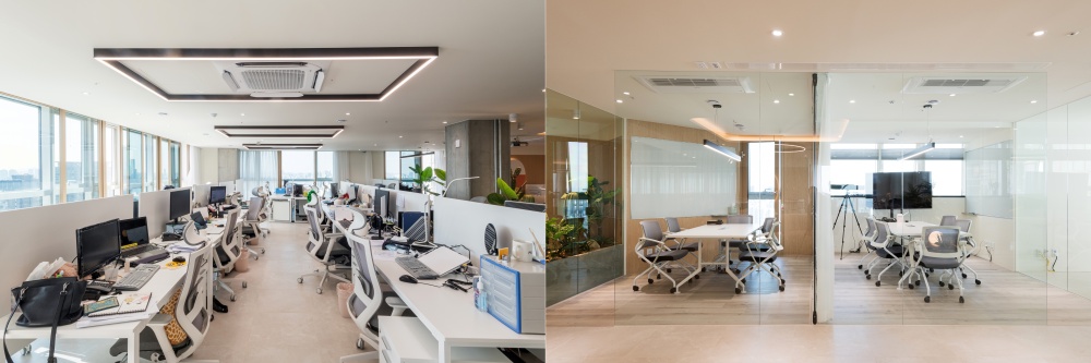 그리고 가장 중요한 사무공간과 회의실은 깔끔한 화이트톤으로 통일했는데요,