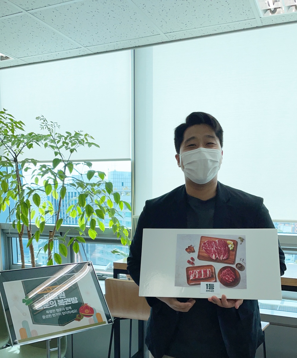 1등 한우세트부터 2등 한돈세트, 3등 백화점 상품권 등 다양한 경품을 준비하며 피알워너들의 관심을 끌었는데요~ 이벤트에 활용된 복권 역시 피알원 내부적으로 자체 제작했다는 점!