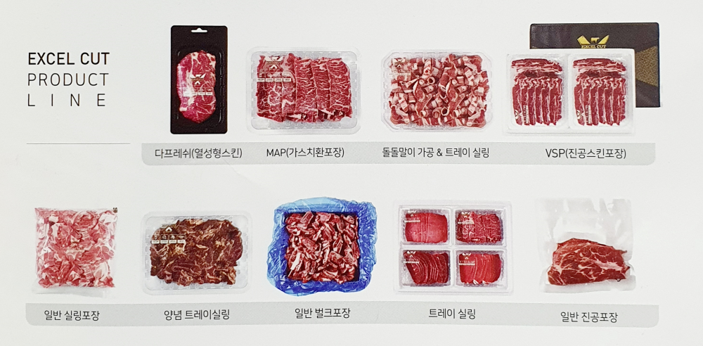 이렇게 생산된 엑셀비프의 소포장육 브랜드인 [엑셀컷]은 집이나 캠핑장 등 원하는 곳에서 간편하게 프리미엄 소고기를 즐길 수 있어 외식업 및 요식업계에서 수요가 많은 제품입니다.