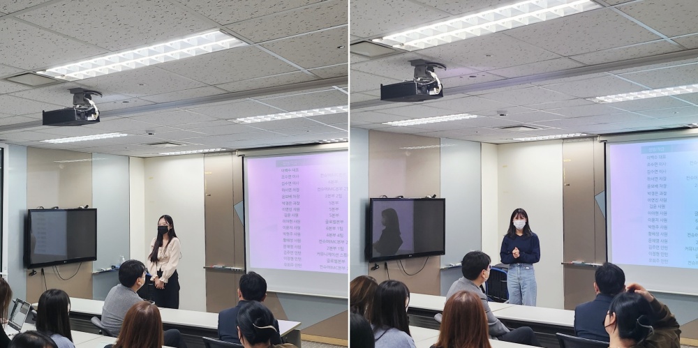그리고 올해 첫 승진자들을 소개하는 자리도 마련됐는데요. 오랫동안 피알원에서 멋진 활약을 보여주신 이희진 이사님과 김수연 이사님께서 대표로 소감을 전해주셨습니다.