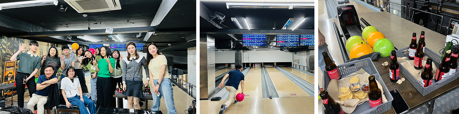 승패와 관계없이 즐길 수 있도록 따로 내기는 하지 않아서 팀 상관없이 서로 응원하고 즐기며 화합의 장을 이뤘습니다. 또 볼링을 하면서 자연스레 대화하고 하이 파이브 등의 스킨십을 하다 보니 금세 어색함이 풀려 더 재미있게 시간을 보낼 수 있었습니다. 특히 사장님과의 볼링 시합은 흔치 않은 기회라 더욱 특별했던 것 같습니다! 🎳