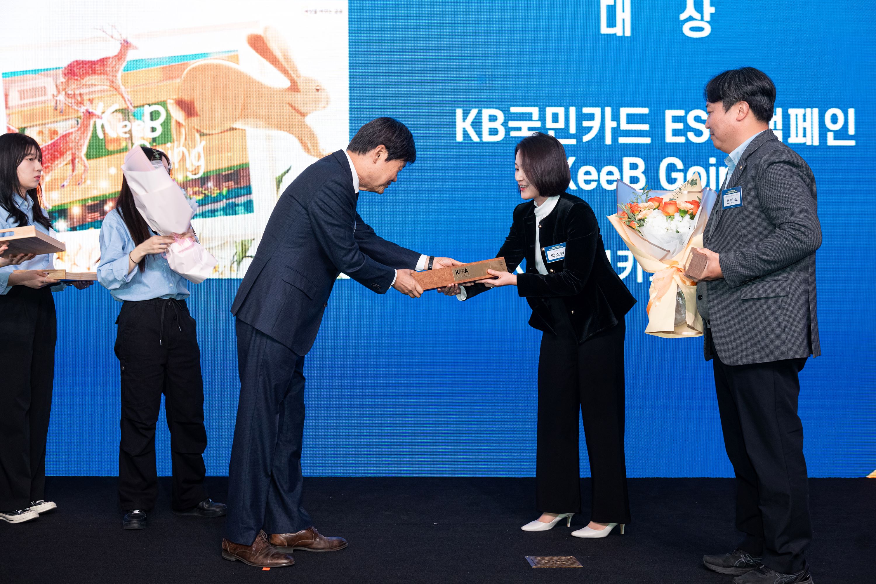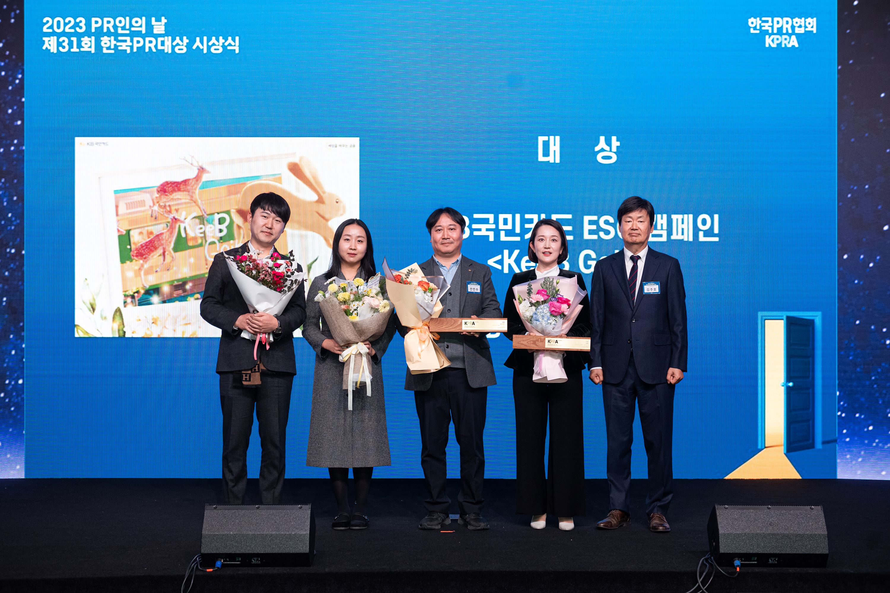 피알원은 총 19개의 수상작 중에서도 가장 빛나는 대상을 차지했어요! 영광의 대상을 수상한 KB국민카드의 'KeeB Going' 캠페인은 일상에서 탄소중립에 대한 중요성을 알리는 ESG 캠페인으로, 환경 문제에 주목하여 '대기전력'을 주제로 한 캠페인을 선보이며 전국민적인 호응을 얻었는데요. KB국민카드의 유튜브 구독자 110만 명 돌파와 'KeeB Going' 캠페인 영상 조회수 250만 회 돌파, 이벤트 참여자 1만 명 돌파로 22-23년 사이 금융권 ESG 캠페인에서 가장 많은 고객 참여를 기록하며 성공을 거두었습니다.