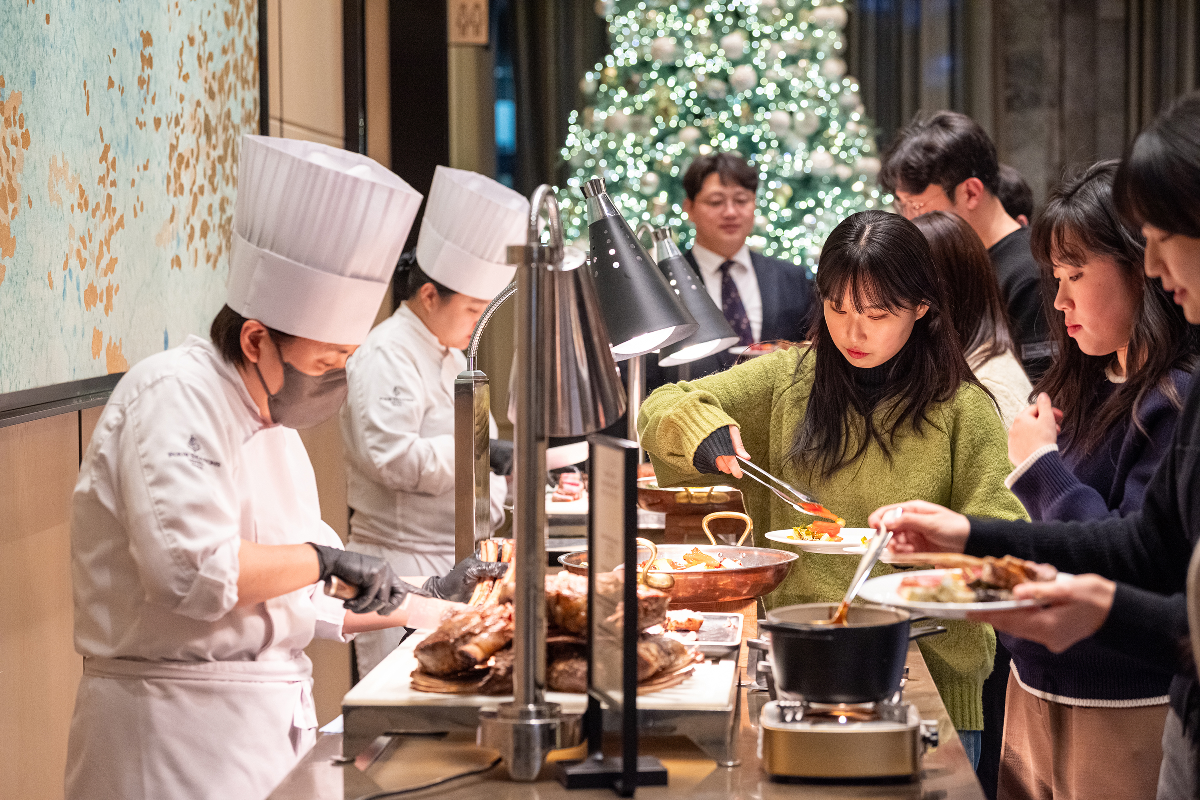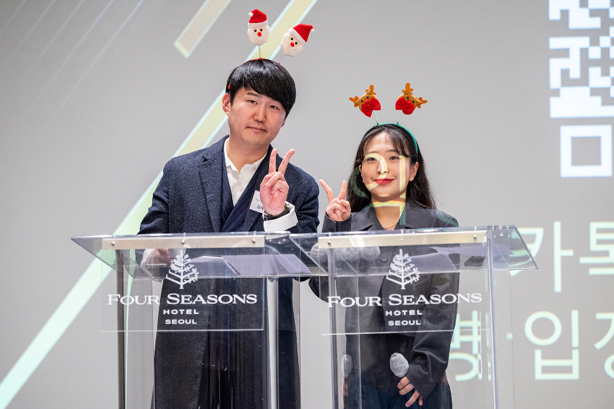 올해 송년회는 '포시즌스 호텔 서울'에서 진행됐는데요. 눈앞에 펼쳐진 맛있는 음식과 포토존까지! 본격적인 행사 시작 전, 피알워너들은 연말 분위기로 가득한 이곳에서 배부르게 배를 채우며 즐거운 시간을 가졌습니다.