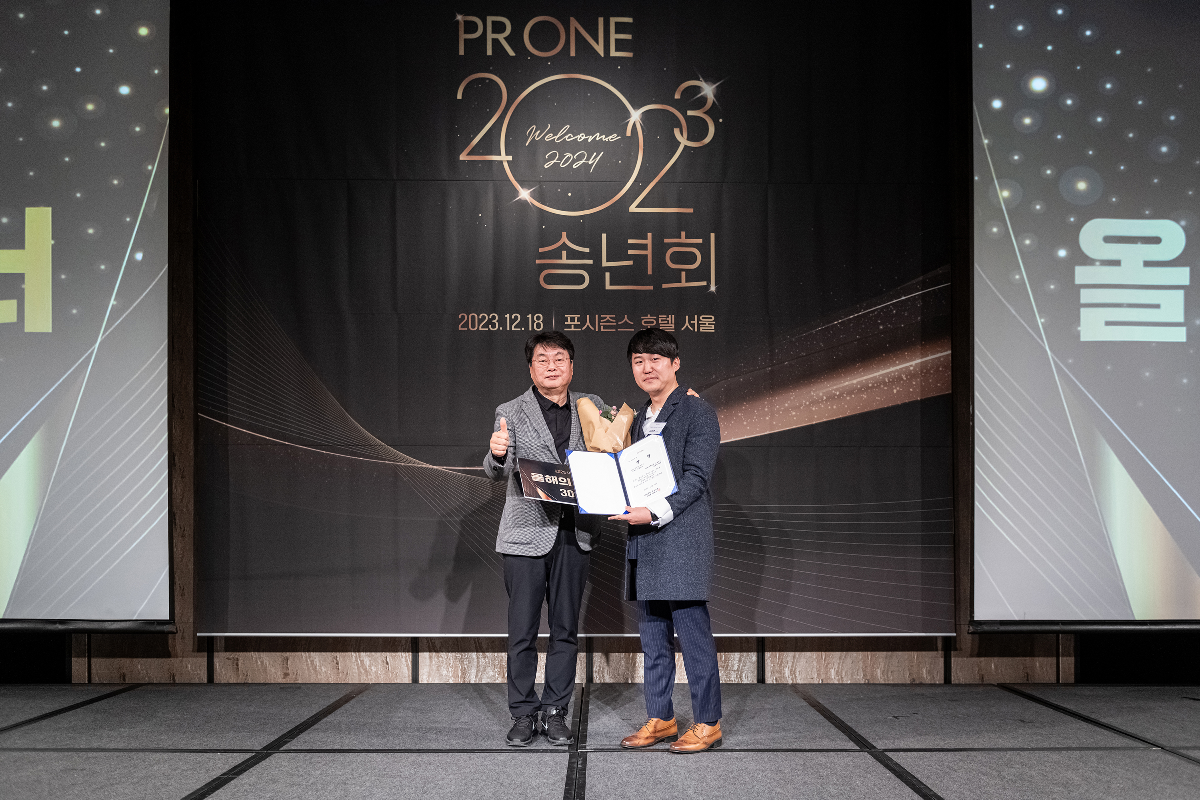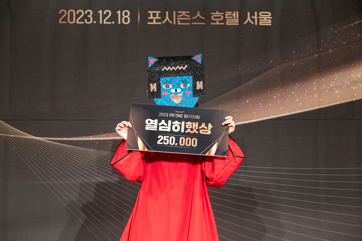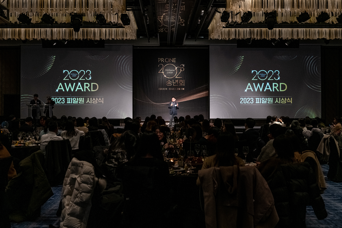 송년회 대미를 장식할 마지막 프로그램은 2023 피알원 어워드였습니다. 한 해 동안 고생한 피알워너와 팀을 선정해 상장과 상금을 수여했는데요. 과연 올해는 어떤 팀이 수상하게 되었을까요?
