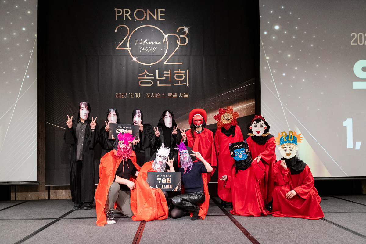 우승은 뛰어난 가창력과 화려한 무대매너를 보여준 핑피크 팀이 차지했습니다. 2023 피알원 송년회를 빛내준 복면가왕 참가자들에게 다시 한번 박수를 보냅니다!