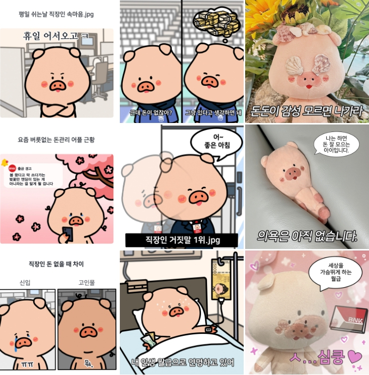 많은 비중의 실무를 담당해야 했기에 다른 사람들보다 더 이른 시기에 내 일에 대한 책임감을 가질 수 있었고, 동시에 다양한 업무를 한 번에 수행하며 업무 능력치를 향상할 수 있었습니다. 특히 23년 재계약을 이뤄내면서 BNK금융그룹 인스타그램의 마스코트 ‘돈돈이’라는 캐릭터를 만들었는데요. 계정의 아이덴티티도 구축하고 대중들에게 자칫하면 딱딱한 브랜드의 이미지를 좀 더 말랑하고 친숙하게 소개할 수 있어 가장 뿌듯한 성과이기도 합니다. 이후 새 대리님이 팀에 합류하면서 함께 캐릭터의 실물 인형도 개발하고 더 안정적으로 채널을 운영하며 지난 7월 소셜아이어워즈 은행 인스타그램 부문에서 대상도 수상하고 24년 비딩에도 성공하면서 팀 성과에 기여할 수 있었던 것 같습니다!