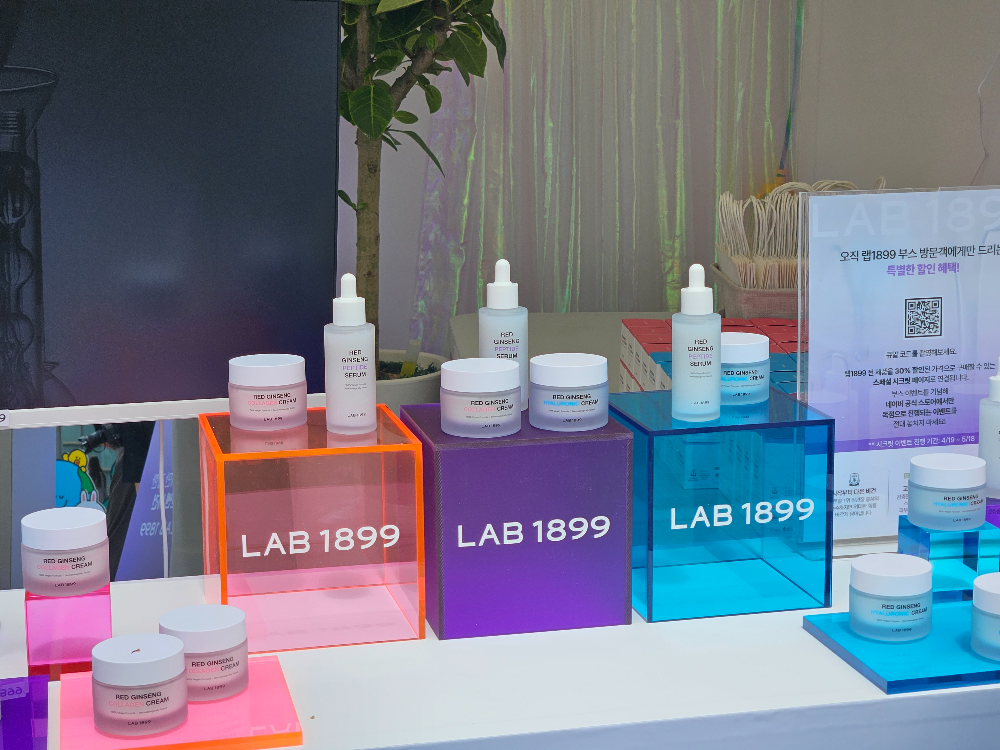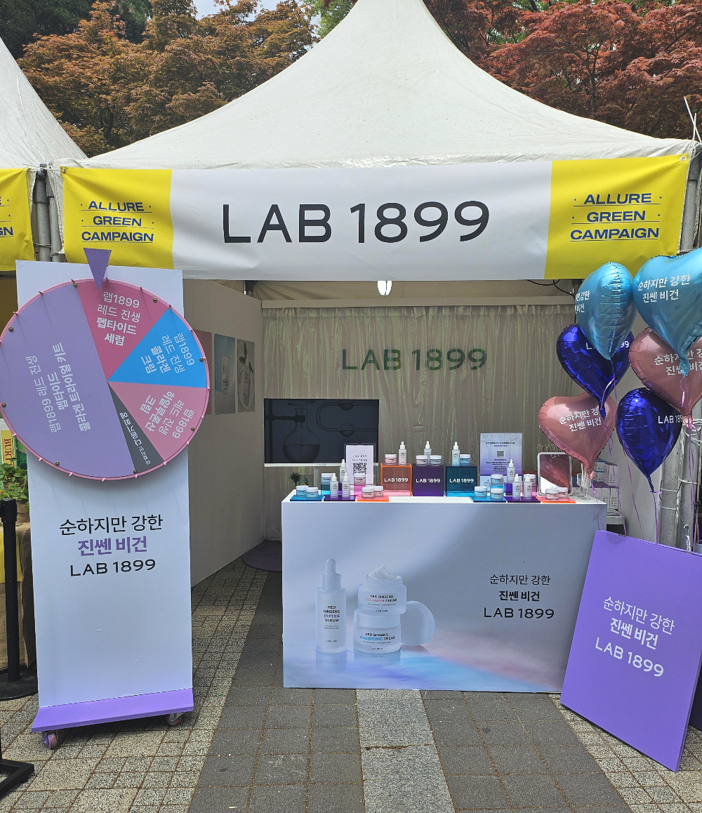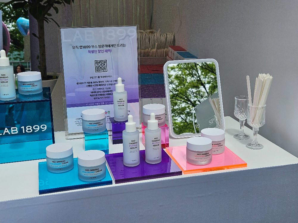 랩 1899 부스는 제품 테스트, 룰렛 이벤트 등 다양한 프로그램을 마련해 신제품 3종 (▲레드 진생 펩타이드 세럼 ▲레드 진생 콜라겐 크림 ▲레드 진생 히알루론산 크림)을 방문객들에게 효과적으로 소개했습니다. ‘룰렛 이벤트’는 간단한 참여 방법과 푸짐한 상품으로 참가자들의 발길을 사로잡았는데요. 특히, 높은 확률로 본품을 받을 수 있었던 이벤트였던 만큼 상품을 수령한 참가자들의 환호와 환한 웃음이 끊이지 않았습니다. 이어 테스트존에서 참가자들은 제품을 직접 손등에 발라보며 피부 고민에 맞는 제품을 골라보는 시간을 가졌습니다.