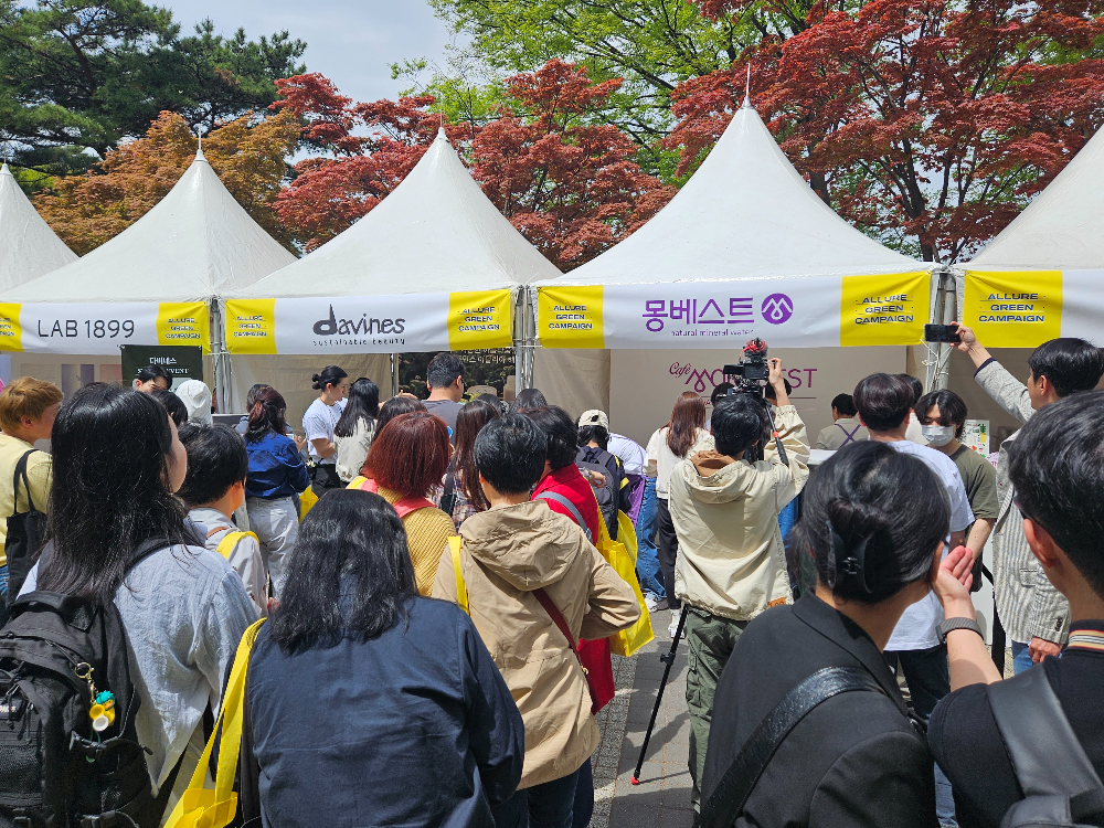 올해로 13회를 맞이하는 ‘얼루어 그린 캠페인’은 뷰티&라이프스타일 매거진 ‘얼루어 코리아’가 지구의 날(4월 22일)을 기념해 친환경의 가치를 나누고 지속가능한 라이프스타일을 권장하고자 진행하는 환경 문화 페스티벌인데요. 이번 행사는 탄소중립 실천이라는 그린 캠페인 취지에 공감하고, 다양한 에코 라이프스타일을 경험하고자 하는 수많은 사람들이 몰려 인산인해를 이뤘습니다.