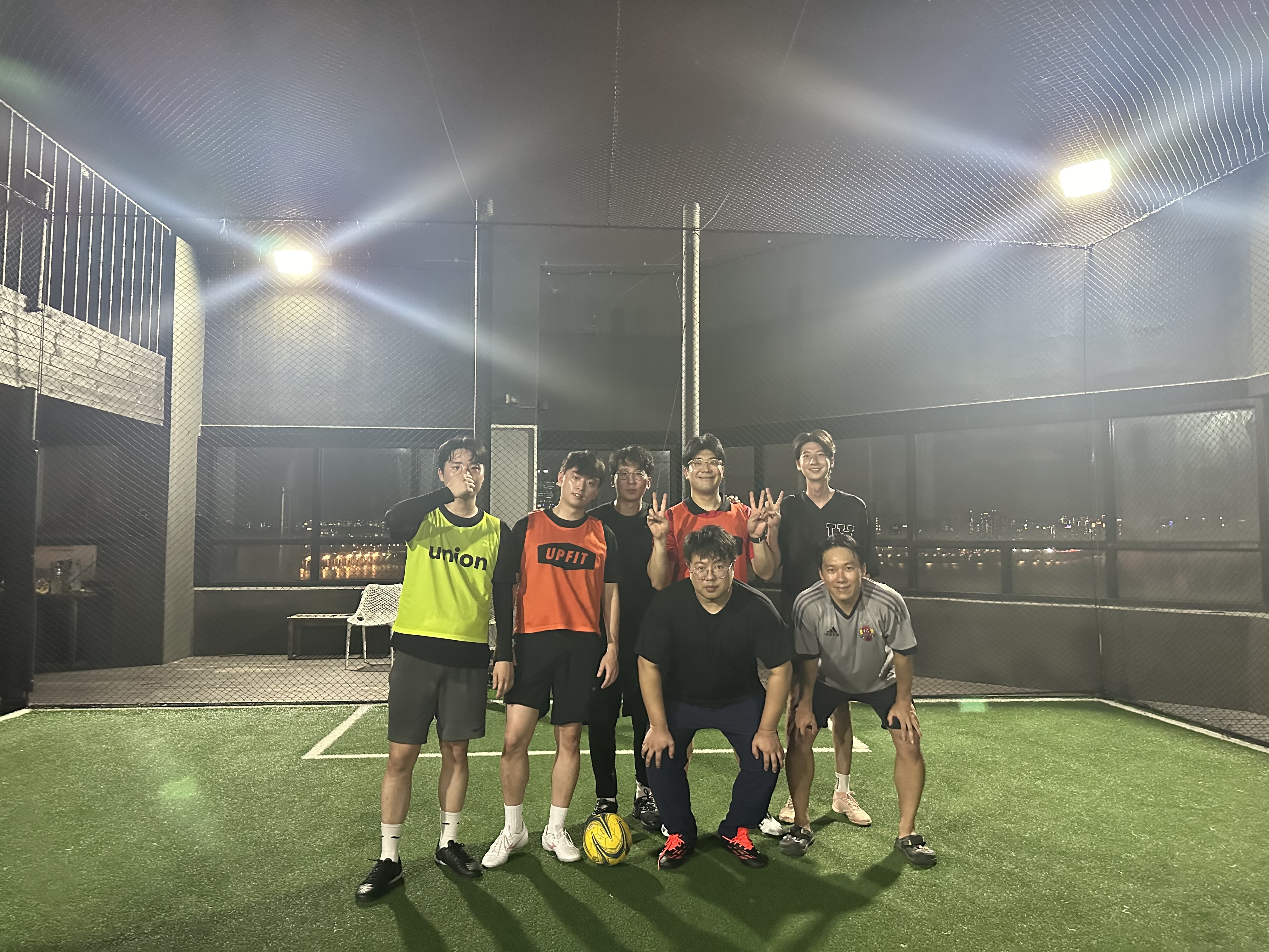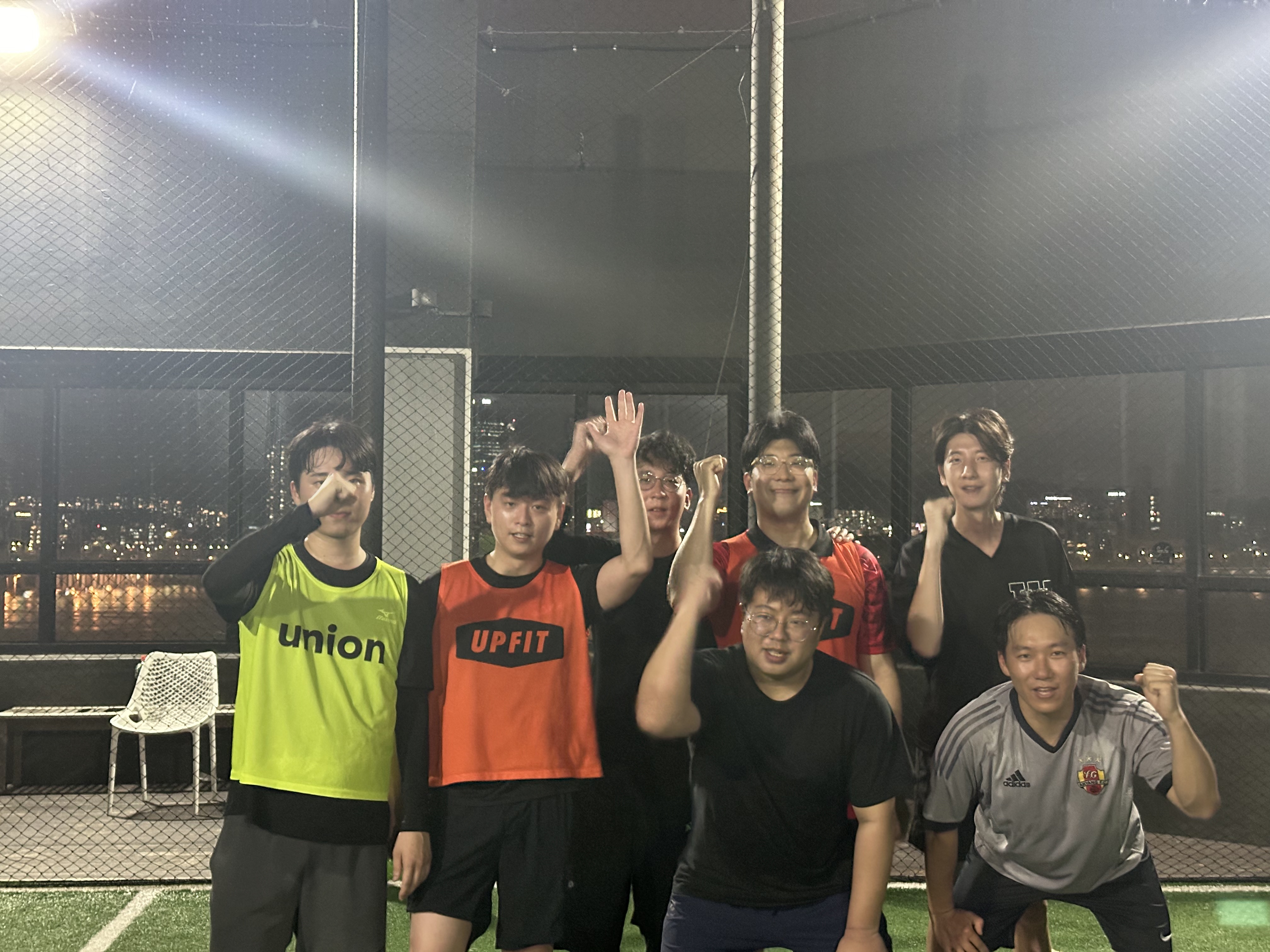 마지막 단체 사진을 찍어보니, 멋진 한강뷰보다도 땀에 젖은 멤버들의 모습이 먼저 눈에 들어왔습니다. 처음 모임치고는 서로의 합을 맞추며 부상 없이 경기를 끝냈다는 안도의 한숨을 내쉬던 순간이었습니다.