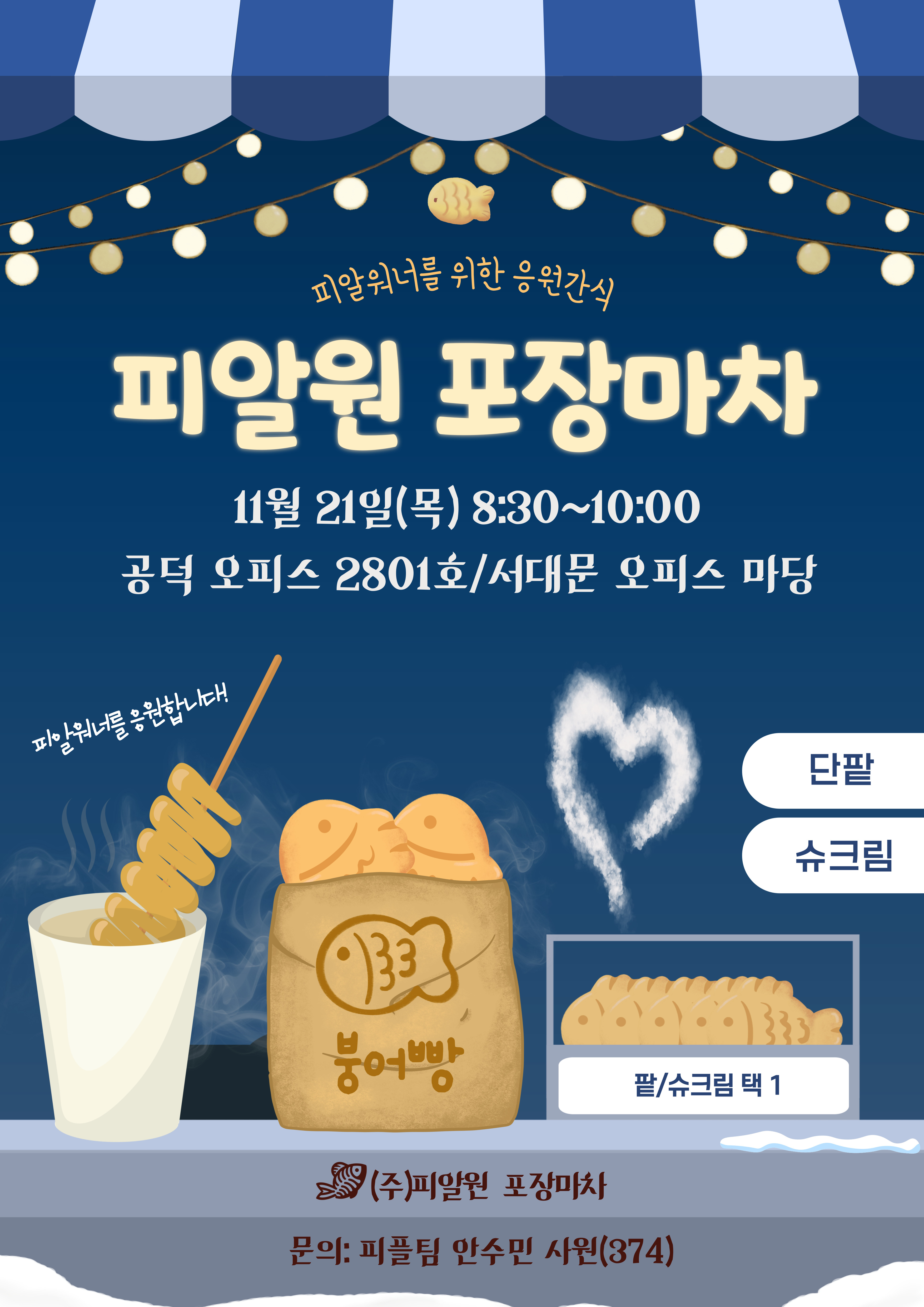 피알원에 11월 21일(목) 오전 8시 30분부터 10시까지 깜짝 포장마차가 열렸습니다.