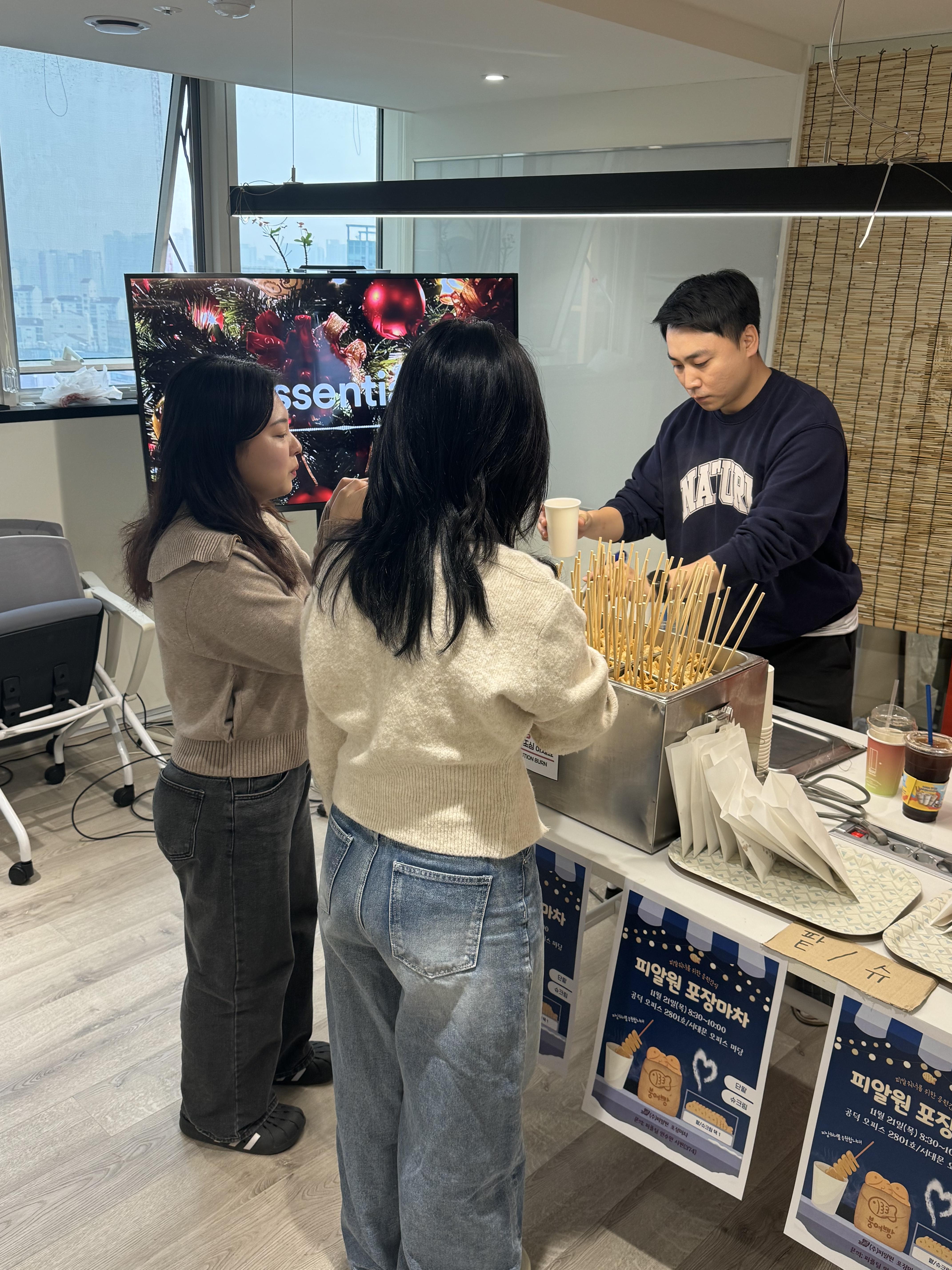 제안 시즌을 맞이하며 고생하고 있는 피알워너들을 위해 갑작스럽게 추워진 날씨에 딱 맞는 붕어빵과 어묵을 준비했는데요, 웃음과 열기가 가득했던 그 현장을 소개해 드립니다!