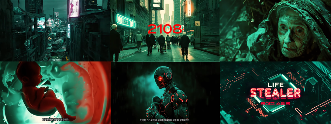 또한 <LIFE STEALER>, <KILLER>와 같은 AI 단편 영화 콘텐츠를 제작하였으며, 애니메이션 영상, 음원 제작, 제품 광고 등 다양한 분야로 활동을 확장하고 있습니다. 특히, AI 기반 창작물은 전통적인 방식으로는 구현하기 어려웠던 상상력을 실현하며 창작자와 소비자 모두에게 새로운 경험을 제공합니다.