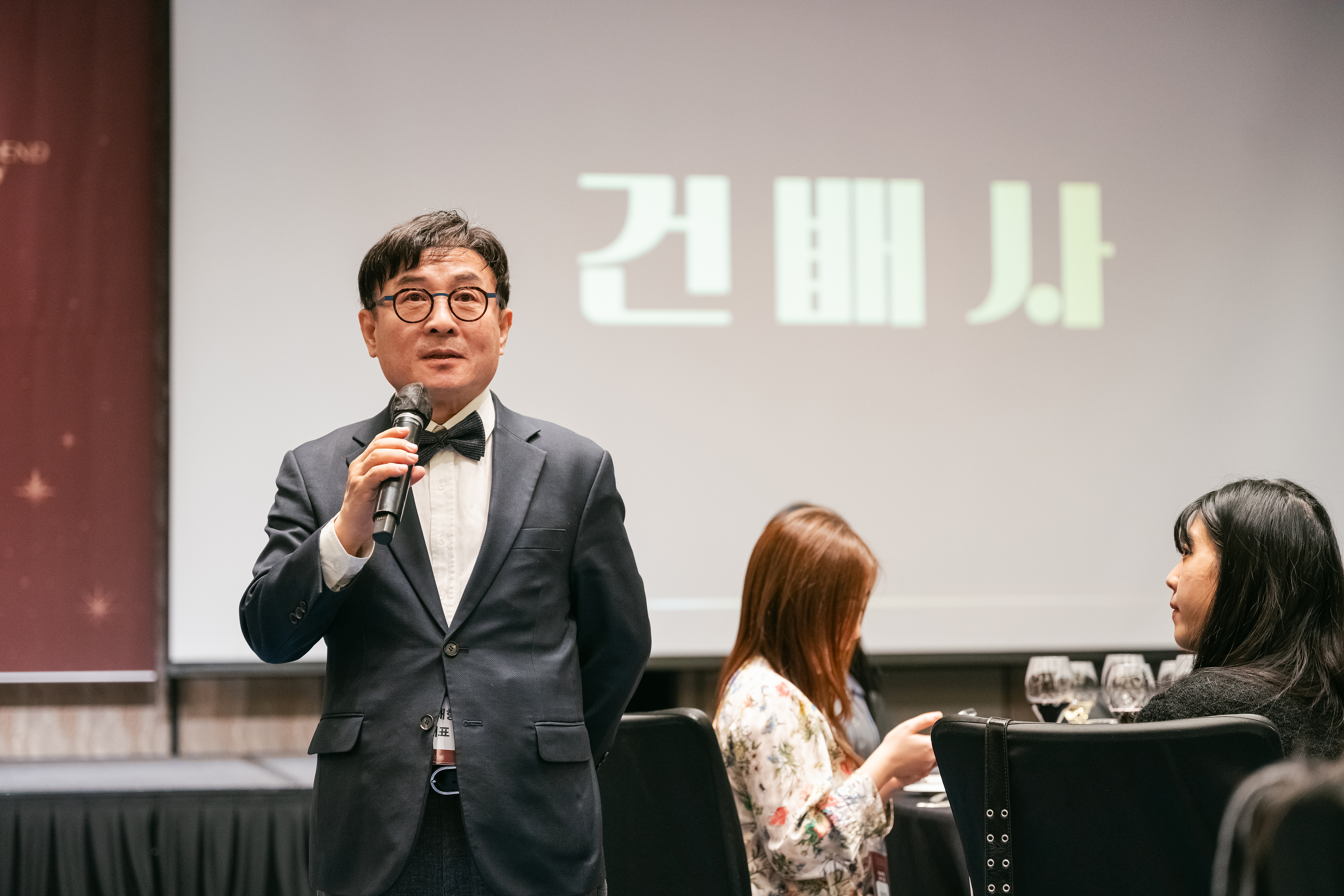 피알워너가 함께 웃고 즐겼던 게임 프로그램을 끝으로 조재형 대표님께서 오늘 송년회를 축하하는 건배사를 진행해 주셨는데요, 피알워너들에 대한 애정이 듬뿍 담긴 말씀을 들려주셨습니다.