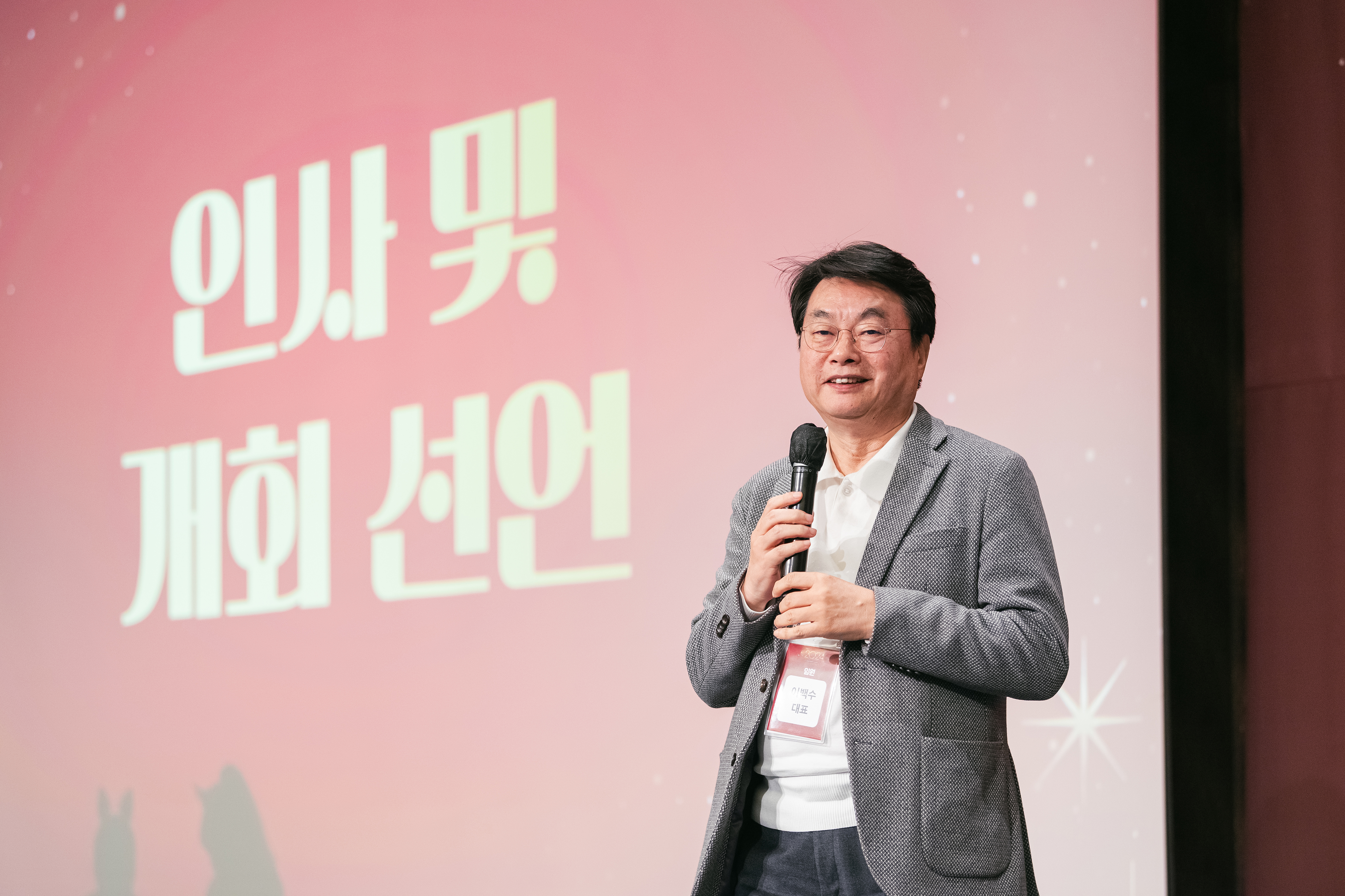7시 20분까지 외부 부스 및 식사시간이 끝나고, 이백수 대표님의 개회선언으로 본격적인 송년회가 시작되었습니다.