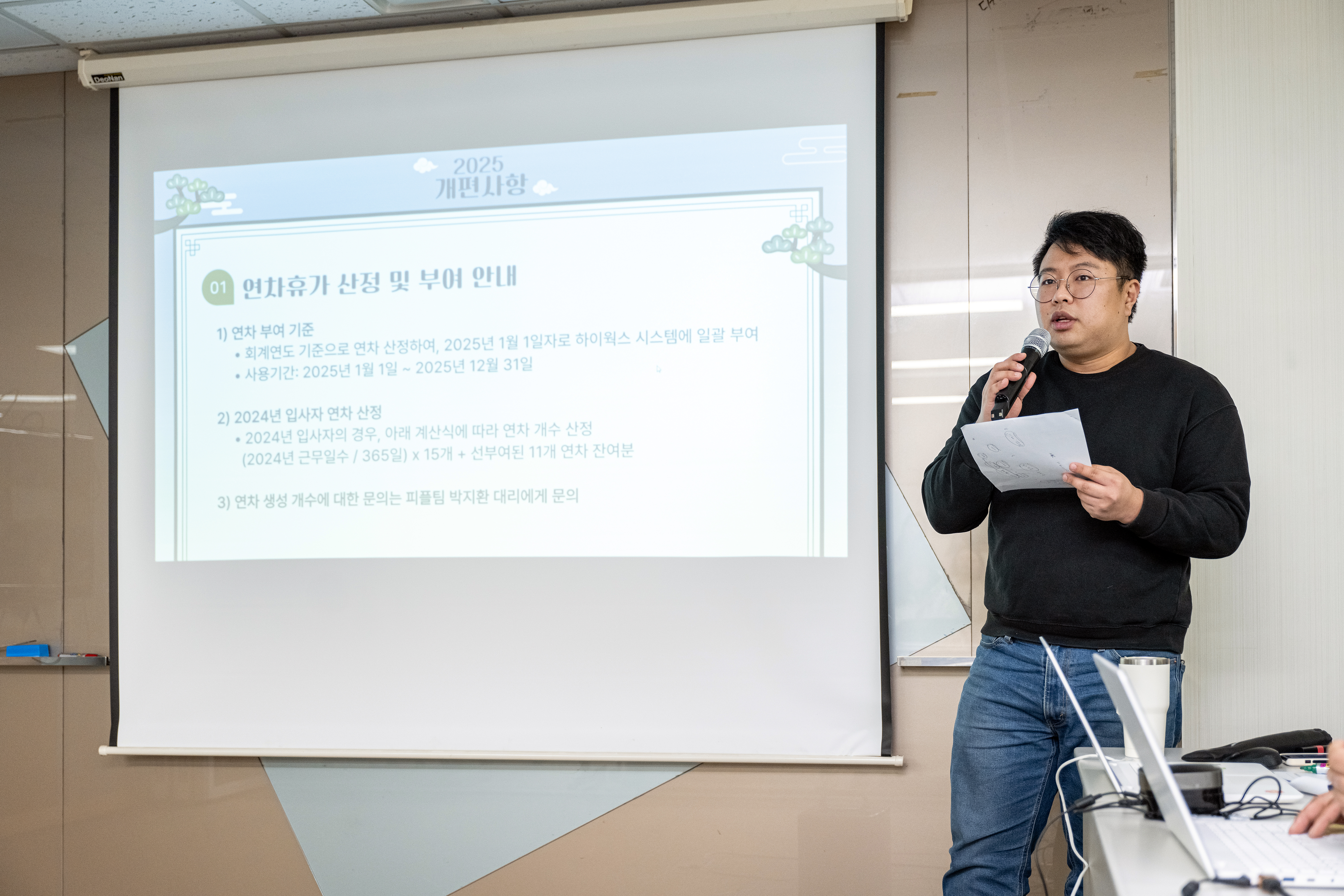 조재형 대표님의 신년사 이후, 2025년 개편사항에 대한 안내가 진행되었습니다.