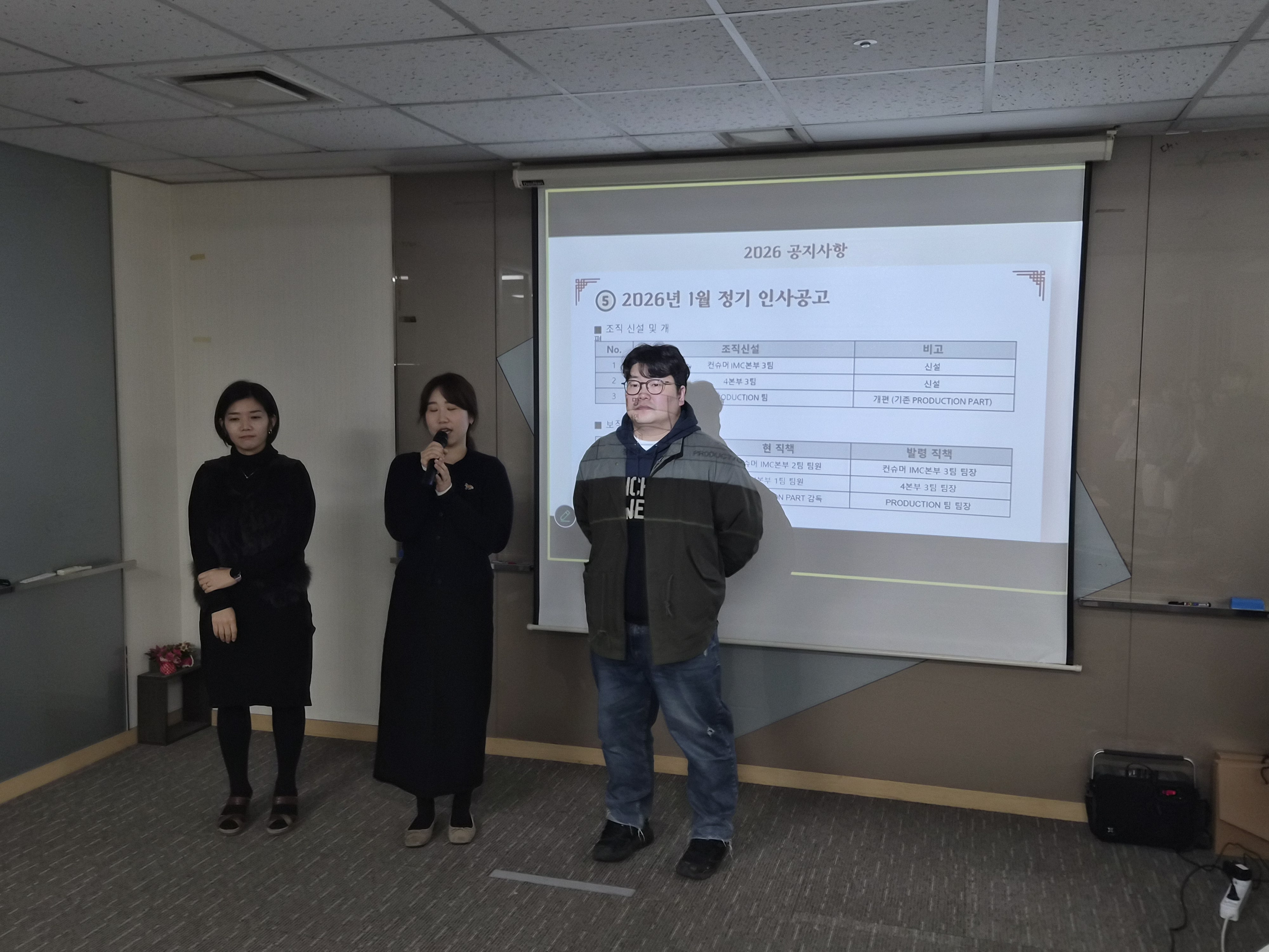 1월을 맞아 승진하신 분들과 새롭게 팀장으로 선임된 분들을 축하하는 자리도 마련되었는데요.
