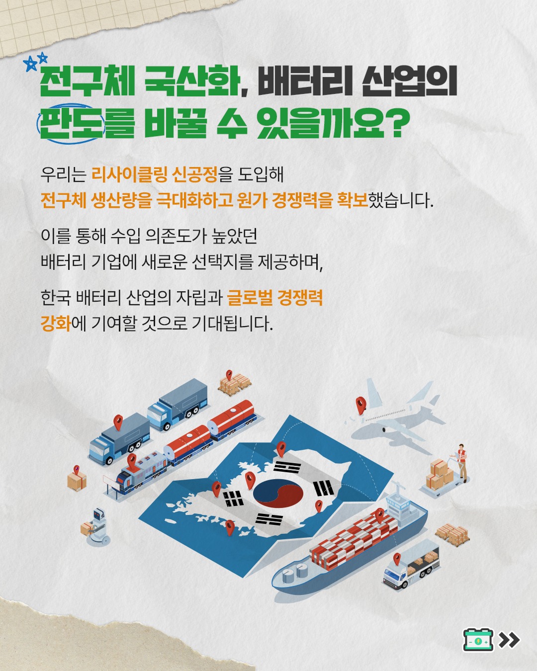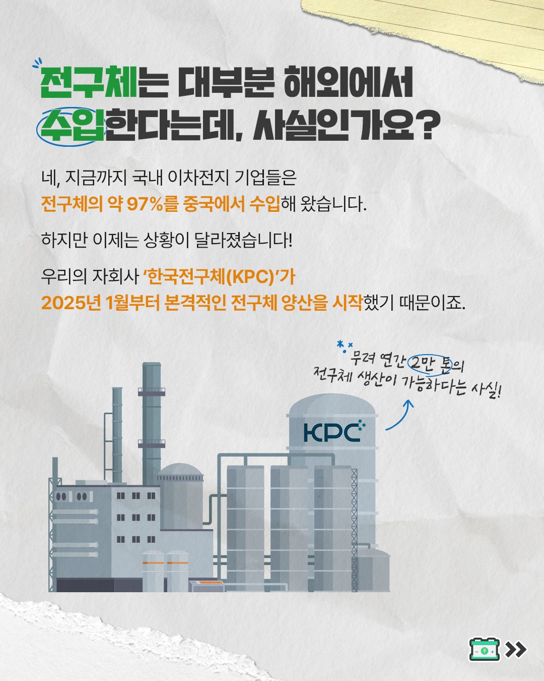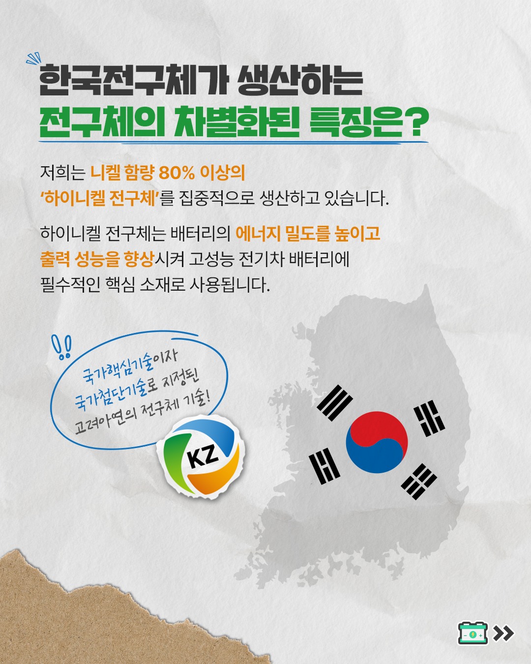 대표적으로 고려아연의 인스타그램에서는 카드뉴스 콘텐츠를 월 2회 정기적으로 발행하고 있습니다. 이 콘텐츠는 심도 있는 기업 정보를 전하되, 독자들이 궁금해할 만한 지점을 질문 형식으로 활용하여 구성하는데요. 예를 들어 이차전지를 다루는 콘텐츠에서는 "국내에서도 실현 가능?", "이제 전구체도 Made in Korea!"와 같이 애국심을 자극하는 타이틀을 사용하여 우수한 인터랙션을 성공적으로 이끌어냈습니다.